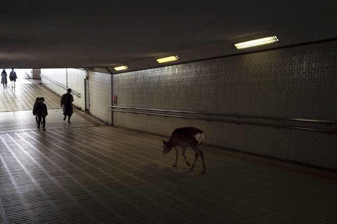 Ελάφι σε υπόγεια διάβαση της Ιαπωνίας ψάχνει για φαγητό. AP