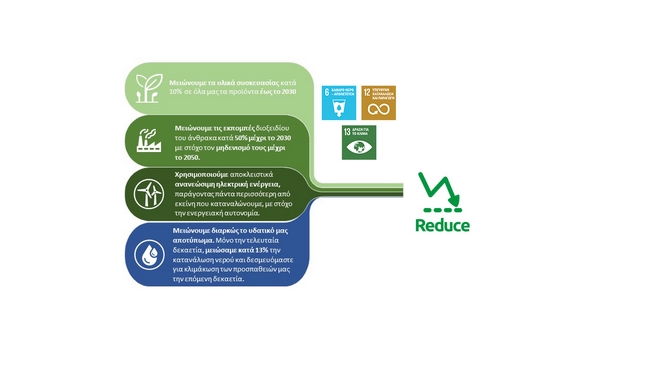 β) Για τη μείωση του υδατικού μας αποτυπώματος. Την τελευταία διετία καταφέραμε να μειώσουμε κατά 13% την κατανάλωση νερού στις παραγωγικές μας εγκαταστάσεις. Δεσμευόμαστε για κλιμάκωση των προσπαθειών αυτών την επόμενη δεκαετία.