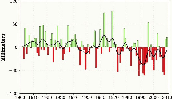 Διάγραμμα χειμερινών βροχοπτώσεων της περιοχής της Μεσογείου για το διάστημα 1900-2010