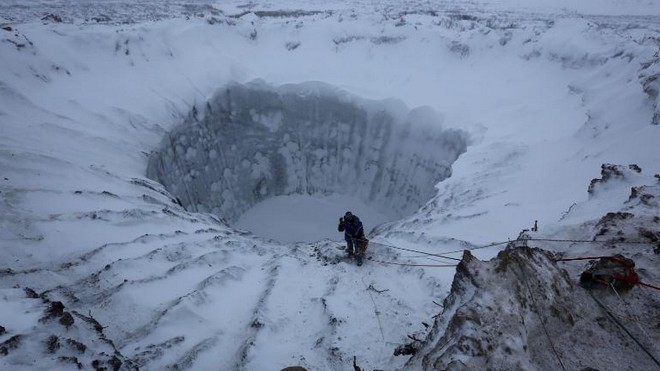 Ένα περίεργο θέαμα αντίκρισε ένα συνεργείο ρωσικού τηλεοπτικού σταθμού, το οποίο πέταξε πάνω από τη σιβηρική τούνδρα πριν λίγες μέρες. Ένας τεράστιος κρατήρας βάθους 30 μέτρων και πλάτους 20 μέτρων του προκάλεσε μεγάλη εντύπωση λόγω τόσο του μεγέθους του όσο και της συμμετρίας του και της τεράστιας δύναμης της φύσης που τον δημιούργησε.