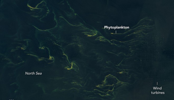 Το φυτοπλαγκτόν είναι πιο άφθονο στη Βόρεια Θάλασσα στα τέλη της άνοιξης και στις αρχές του καλοκαιριού λόγω των υψηλών επιπέδων θρεπτικών συστατικών στο νερό. Το λιώσιμο των θαλάσσιων πάγων και η αυξημένη απορροή από τους ευρωπαϊκούς ποταμούς—προϊόν του λιώσιμου χιονιού και των ανοιξιάτικων βροχών—μεταφέρουν ένα μεγάλο φορτίο θρεπτικών συστατικών στη θάλασσα, ενώ παράλληλα φρεσκάρουν τα επιφανειακά ύδατα. Οι έντονοι εποχικοί άνεμοι που πνέουν πάνω από τη σχετικά ρηχή θάλασσα προκαλούν επίσης μεγάλη ανάμειξη που φέρνει θρεπτικά συστατικά στην επιφάνεια. Χωρίς φυσικό δείγμα, δεν είναι δυνατό να πούμε με βεβαιότητα ποιος τύπος φυτοπλαγκτού υπάρχει σε αυτές τις εικόνες. Ωστόσο, η εμφάνιση των ανθοφοριών είναι παρόμοια με εκείνες που δημιουργούνται από το Noctiluca scintillans—ένα είδος θαλάσσιου δεινομαστιγώματος που είναι γνωστό ότι ζει σε αυτήν την περιοχή το καλοκαίρι. Αν και το Noctiluca scintillans ανθίζει μπορεί να λάμπει τη νύχτα με όμορφους τρόπους, η παρουσία τους μπορεί επίσης να απορροφήσει οξυγόνο από το νερό και να προκαλέσει υποξία και νεκρές ζώνες.