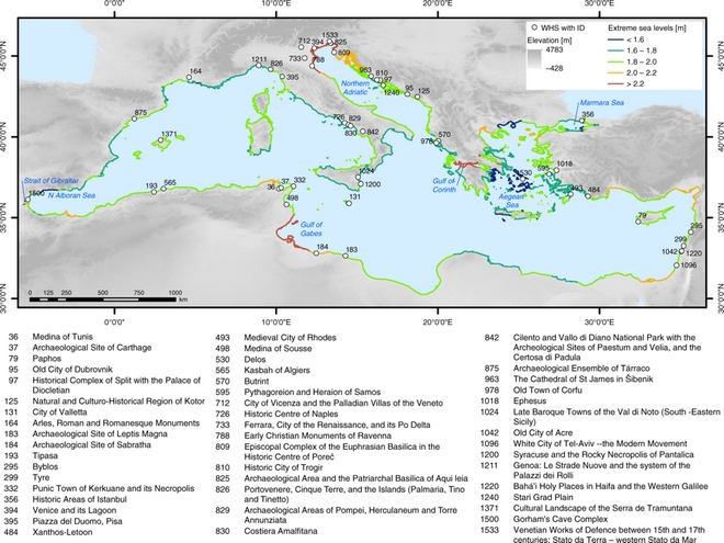 Σύμφωνα με την έρευνα, που δημοσιεύτηκε στο επιστημονικό περιοδικό Nature Communications, 47 από τα 49 μνημεία που υπάγονται στην προαναφερόμενη λίστα του οργανισμού και βρίσκονται στη Μεσόγειο, κινδυνεύουν να υποστούν ζημιές από την αύξηση της στάθμης της θάλασσας, τη διάβρωση του εδάφους ή και από τα δύο, με τις επιλογές για προστασία των περισσότερων να είναι λιγοστές.