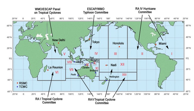 Σχετικά με την ονοματοδοσία των τροπικών κυκλώνων υπάρχει η εντύπωση ότι τα ονόματα δίνονται από υπηρεσίες των ΗΠΑ, ενώ στην πραγματικότητα εδώ και πολλές δεκαετίες τα ονόματα δίνονται από τον Παγκόσμιο Μετεωρολογικό Οργανισμό . Πληροφορίες μπορείτε να βρείτε στην σχετική ιστοσελίδα του Οργανισμού όπου είναι αναρτημένες λίστες οι οποίες που αναφέρονται στα ονόματα τα οποία θα ισχύσουν για τα επόμενα 6 χρόνια και αφορούν κάθε περιοχή σύμφωνα με τον παρακάτω χάρτη.