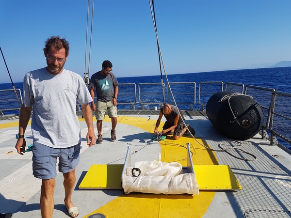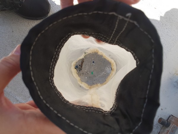 Εκεί, θα παραμείνει για 15 λεπτά ακριβώς, συλλέγοντας οποιοδήποτε σωματίδιο βρίσκεται στο νερό, ενώ η ταχύτητα του πλοίου για αυτό το χρονικό διάστημα θα είναι 2 κόμβοι. Το ροόμετρο που βρίσκεται στην είσοδο του διχτυού καταγράφει τη ροή του νερού που περνάει από το δίχτυ, ώστε να γίνεται στατιστική εκτίμηση των μικροπλαστικών που υπάρχει ανά μονάδα όγκου του νερού.