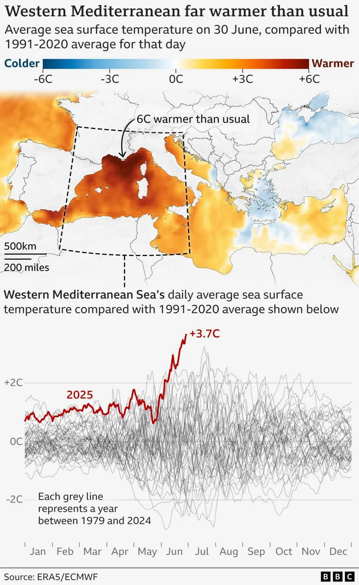 Ήταν ο πιο ακραίος θαλάσσιος καύσωνας που έχει καταγραφεί ποτέ στη δυτική Μεσόγειο αυτή την περίοδο του χρόνου, επηρεάζοντας μεγάλες θαλάσσιες περιοχές για εβδομάδες.