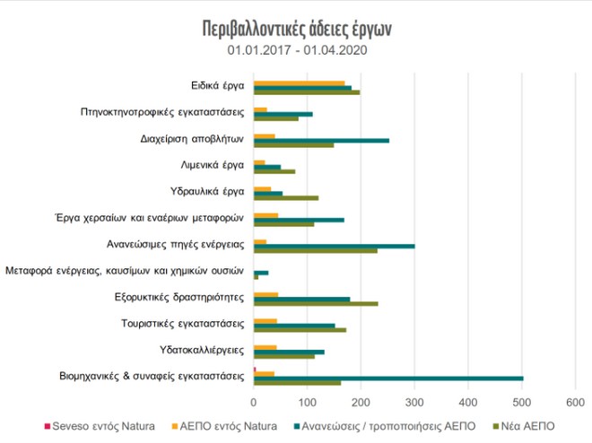 Όμως και από τα ίδια τα στοιχεία του ΥΠΕΝ προκύπτει ότι πολλές περιβαλλοντικές άδειες εκδίδονται, είτε εντός είτε εκτός περιοχών Natura.