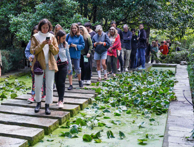 Περπατήσαμε μέσα σε δενδρώνες και ανθώνες, δίπλα από λίμνες με χρυσόψαρα, κόι, αλλά και νεροχελώνες, διασχίσαμε μονοπάτια που τριγύρω τους είχαν νούφαρα και το νερό ήταν στρωμένο με πράσινη φακή, περάσαμε μέσα από συστάδες μπαμπού, αλλά και δίπλα από μία ελιά 1000 ετών, είδαμε για πρώτη φορά ένα Γκίνγκο Μπιλόμπα, ένα ζωντανό απολίθωμα όπως το χαρακτηρίζουν οι βιολόγοι, καθώς πρόκειται για ένα δέντρο ελάχιστα αλλαγμένο από την Ιουρασική περίοδο, αλλά και μία καταπράσινη εφεδρίνη να ξεκουράζεται πάνω σε έναν τεράστιο ευκάλυπτο.