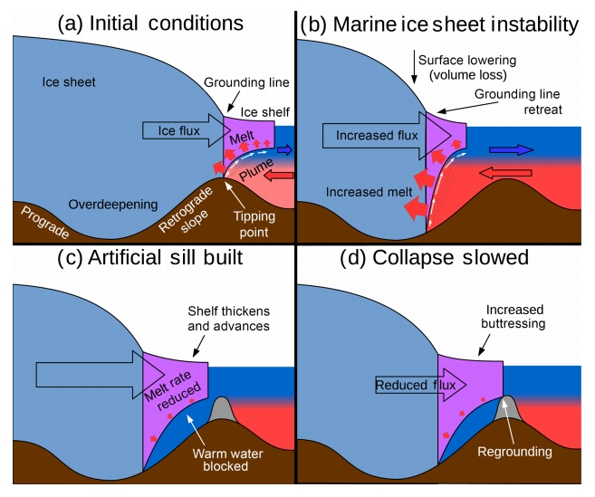 Σύμφωνα πάντα με το project, τα τείχη αυτά θα μπορούσαν να σταματήσουν τη ροή ζεστών θαλάσσιων ρευμάτων που προκαλούν το λιώσιμο και τη διάβρωσή των παγετώνων.