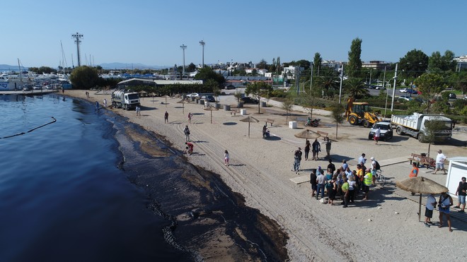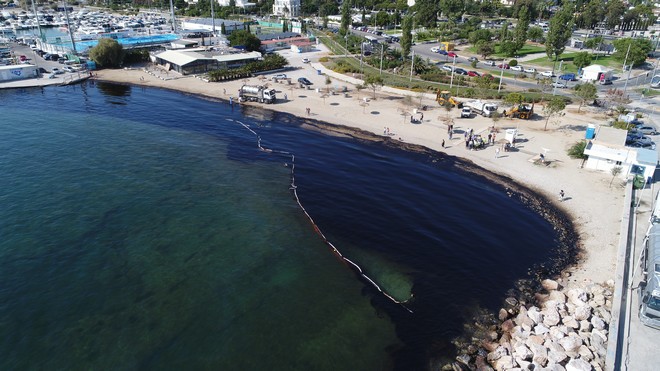 Σε διάφορα σημεία, σε όλες τις περιοχές από τη Σαλαμίνα έως την Πειραϊκή, τον Άγιο Κοσμά και τη Γλυφάδα έχουν ποντιστεί πλωτά φράγματα, για περιορισμό της ρύπανσης.