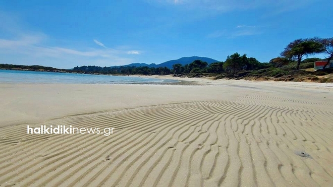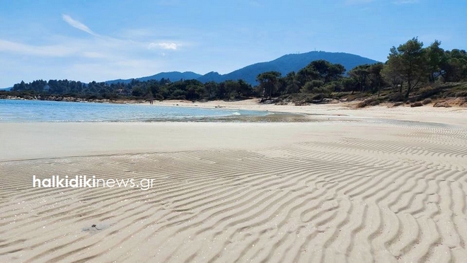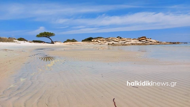 Η μοναδικής ομορφιάς παραλία στο Καρύδι της Σιθωνίας έχει αλλάξει τις τελευταίες ημέρες λόγω της άμπωτη, με τη θάλασσα να υποχωρεί κατά πολύ και τη χρυσή αμμουδιά να επεκτείνεται.