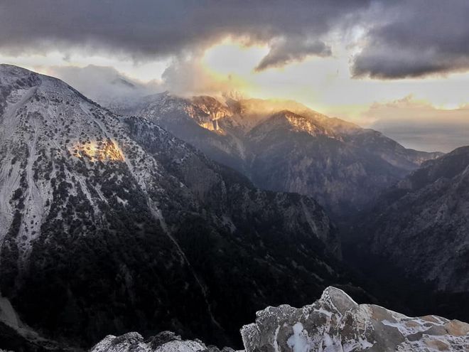 Τα γιορτινά τους φόρεσαν οι κορυφές των Χανίων, αφού το «έστρωσε» σε Λευκά όρη και Ομαλό, πάνω από τα 1200 μέτρα, αλλά και στην κορυφή που βρίσκεται το γνωστό καταφύγιο Καλλέργη.