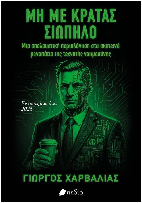 Στο “Μη με κρατάς σιωπηλό” (εκδόσεις πεδίο) ο Χαρβαλιάς συζητά με τον … Σάκη, έναν συνομιλητή που έφτιαξε στο ChatGpt. Φτιάχνει έναν χαρακτήρα που πατά με το ένα πόδι στις αναλυτικές προσεγγίσεις του διαδικτύου και με το άλλο στη χαλαρότητα που μπορεί να έχει ένας συνομιλητής στο καφενείο της πλατείας του χωριού.