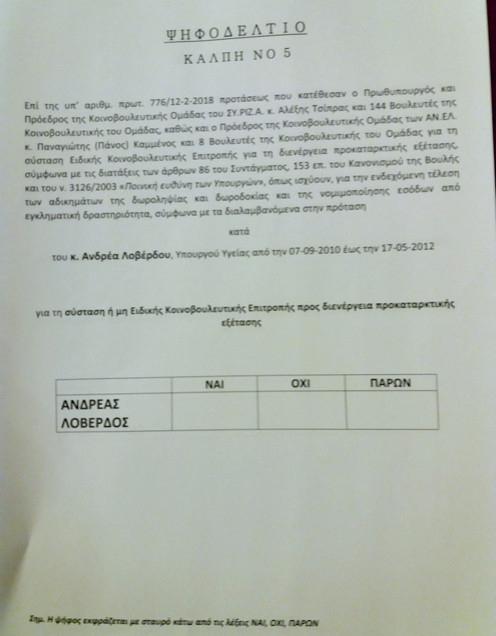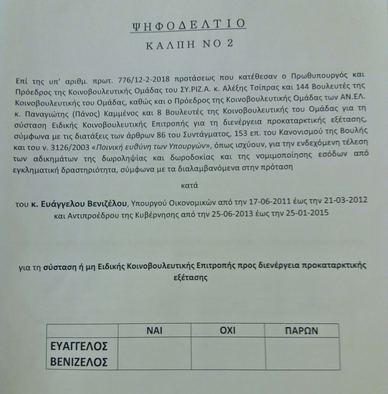 Η μαραθώνια συνεδρίαση και ψηφοφορία στη βουλή κατέληξε σε προανακριτική για 10 πρόσωπα. Τα ψηφοδέλτια που έπεσαν στην κάλπη