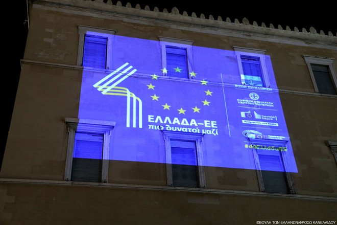 Στην ειδική συνεδρίαση της Επιτροπής Ευρωπαϊκών Υποθέσεων της Βουλής των Ελλήνων παρουσιάστηκε για πρώτη φορά το κοινό λογότυπο της επετείου για τα 40 χρόνια από την ένταξη της Ελλάδας στην ΕΕ.