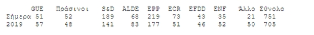 Σύμφωνα με την ανάλυση του πρακτορείου, το EPP μπορεί να κερδίσει περίπου 177 από τις συνολικά 705 έδρες (σήμερα έχει 219 έδρες σε σύνολο 751, αλλά οι έδρες του Ευρωπαϊκού Κοινοβουλίου θα μειωθούν λόγω της αποχώρησης της Βρετανίας, τον Μάρτιο). Οι S&D θα παραμείνουν στη δεύτερη θέση, με 141 έδρες (από 189 σήμερα). Ένας άτυπος “μεγάλος συνασπισμός” με το EPP δεν θα εξασφάλιζε επομένως πλειοψηφία στα δύο κόμματα, γεγονός που σημαίνει ότι ο νέος επικεφαλής της Κομισιόν θα πρέπει να αναζητήσει ευρύτερη στήριξη για να προωθεί τις προτάσεις του.