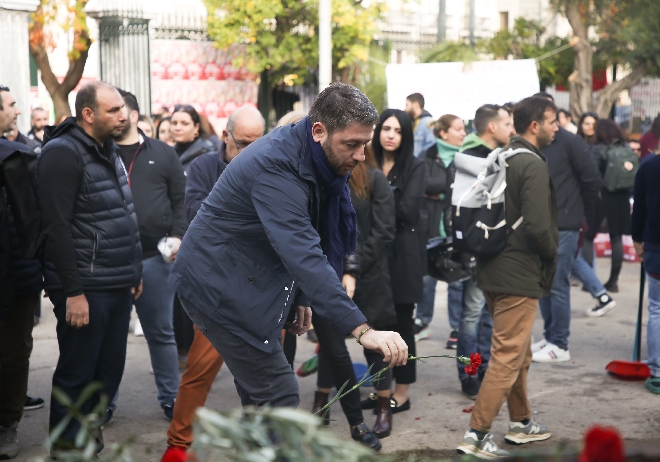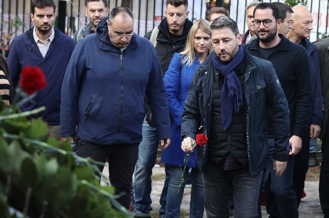 Φόρο τιμής στους εξεγερθέντες του 1973 απέτισε ο Νίκος Ανδρουλάκης ο οποίος βρέθηκε στο Πολυτεχνείο τιμώντας την 49η επέτειο.