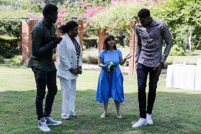 Η Κατερίνα Σακελλαροπούλου υποδέχτηκε τον Γιάννη Αντετοκούνμπο, τον Άλεξ και την μητέρα τους Βερόνικα στο Προεδρικό Μέγαρο, μία ημέρα μετά την επίσημη πολιτογράφηση τους ως Έλληνες πολίτες της Βερόνικα και του Άλεξ.