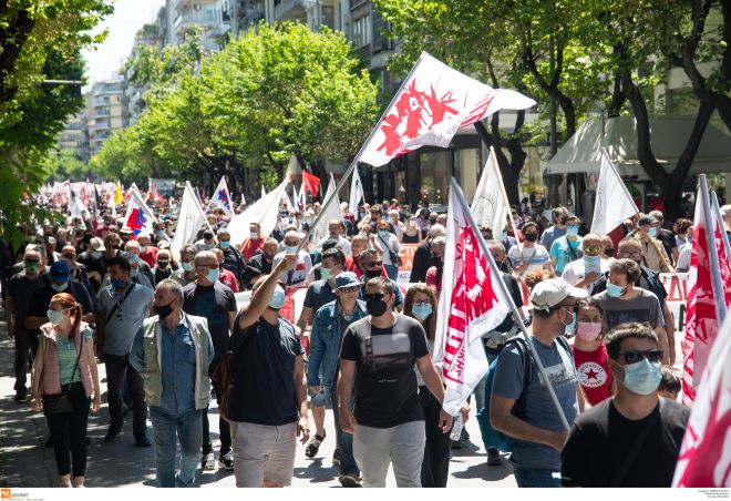 Απο την συγκέντρωση για την Εργατική Πρωτομαγιά 2021. AP