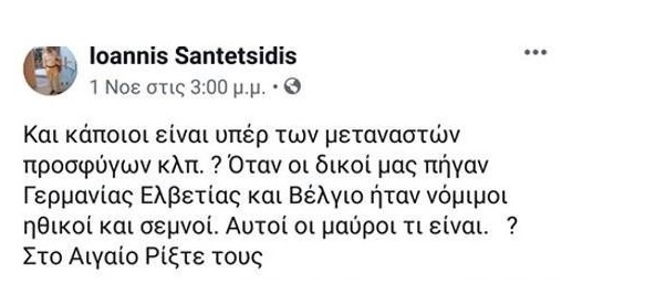Ο κ.Σαντετσιδης έγραψε ειδικότερα σε μέσο κοινωνικής δικτύωσης: