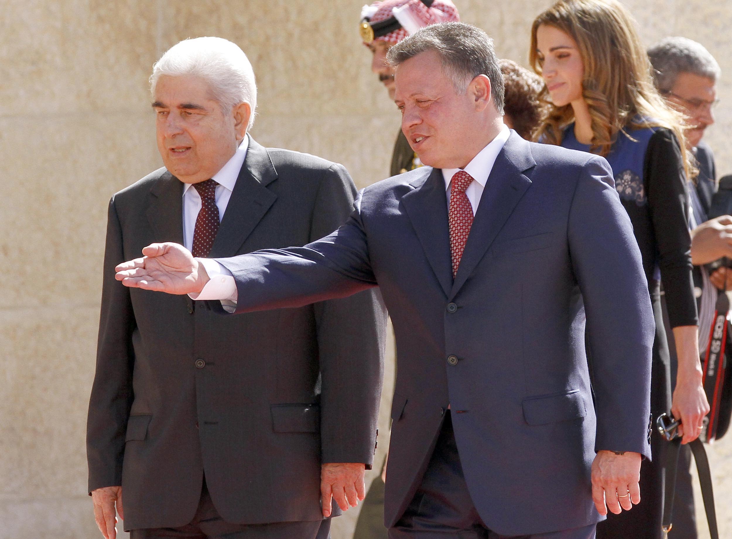 Ο βασιλιάς της Ιορδανίας Αμπντουλάχ Β περπατά με τον Δημήτρη Χριστόφια στο βασιλικό παλάτι στο Αμμάν της Ιορδανίας στις 5 Σεπτεμβρίου 2012.