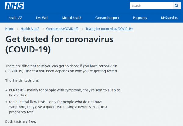 Μάλιστα, τη δημοσιογράφο του Bloomberg επιβεβαιώνει και το NHS, το οποίο στην επίσημη σελίδα του αναφέρει ότι τόσο τα rapid όσο και τα PCR τεστ είναι δωρεάν.