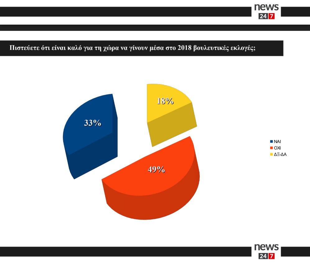 Στο ερώτημα αν οι πολίτες θεωρούν καλό για τη χώρα να γίνουν βουλευτικές εκλογές μέσα στο 2018 απαντούν: