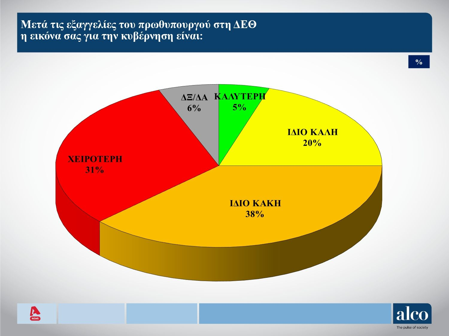 Την έντονη αμφισβήτηση των πολιτών σχετικά με τα πρόσφατα οικονομικά μέτρα που ανακοινώθηκαν στη Διεθνή Έκθεση Θεσσαλονίκης καταγράφει το δεύτερο μέρος της δημοσκόπησης της Alco, που παρουσιάστηκε το βράδυ της Τρίτης (30/9/) από τον Alpha.