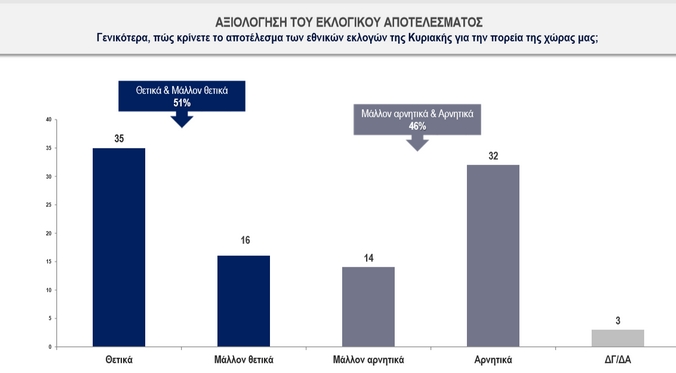 To 51% των ερωτηθέντων κρίνουν θετικά ή μάλλον θετικά το αποτέλεσμα των εκλογών