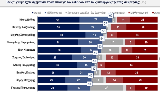 Στους νέους υπουργούς το μεγαλύτερο ποσοστό αποδοχής το έχει ο Κωστής Χατζηδάκης