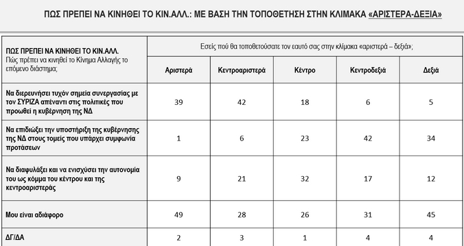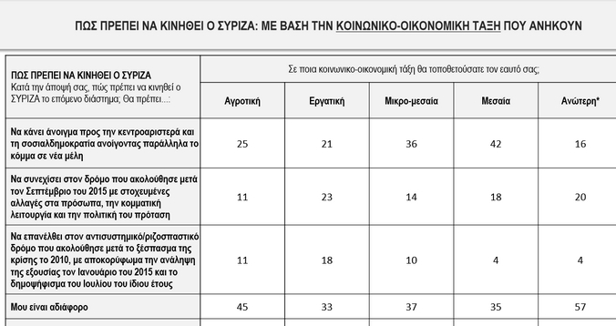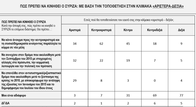 Επίσης για τον ΣΥΡΙΖΑ οι περισσότεροι από τους ερωτηθέντες πιστεύουν ότι πρέπει να κινηθεί περισσότερο προς τα κεντροαριστερά.