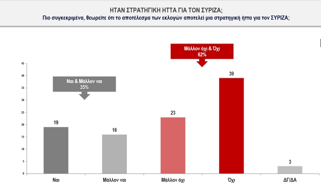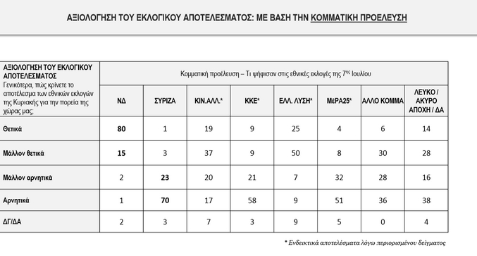 Θετικά αξιολογούν το αποτέλεσμα των εκλογών για τον ΣΥΡΙΖΑ τόσο το σύνολο του δείγματος όσο και οι ψηφοφόροι του κόμματος.