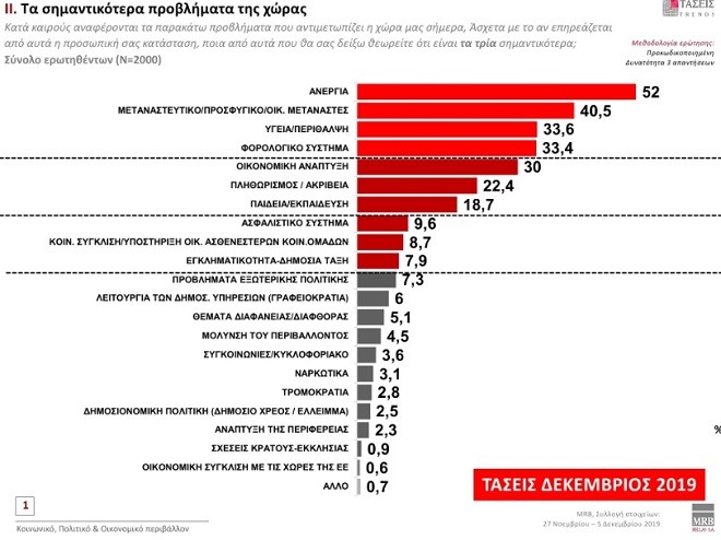 Ως προς τα σημαντικότερα προβλήματα της χώρας για τους πολίτες είναι: