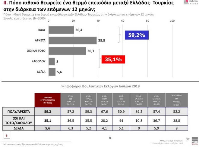Στο ερώτημα πόσο πιθανό είναι ένα θερμό επεισόδιο με την Τουρκία οι πολίτες απαντούν: