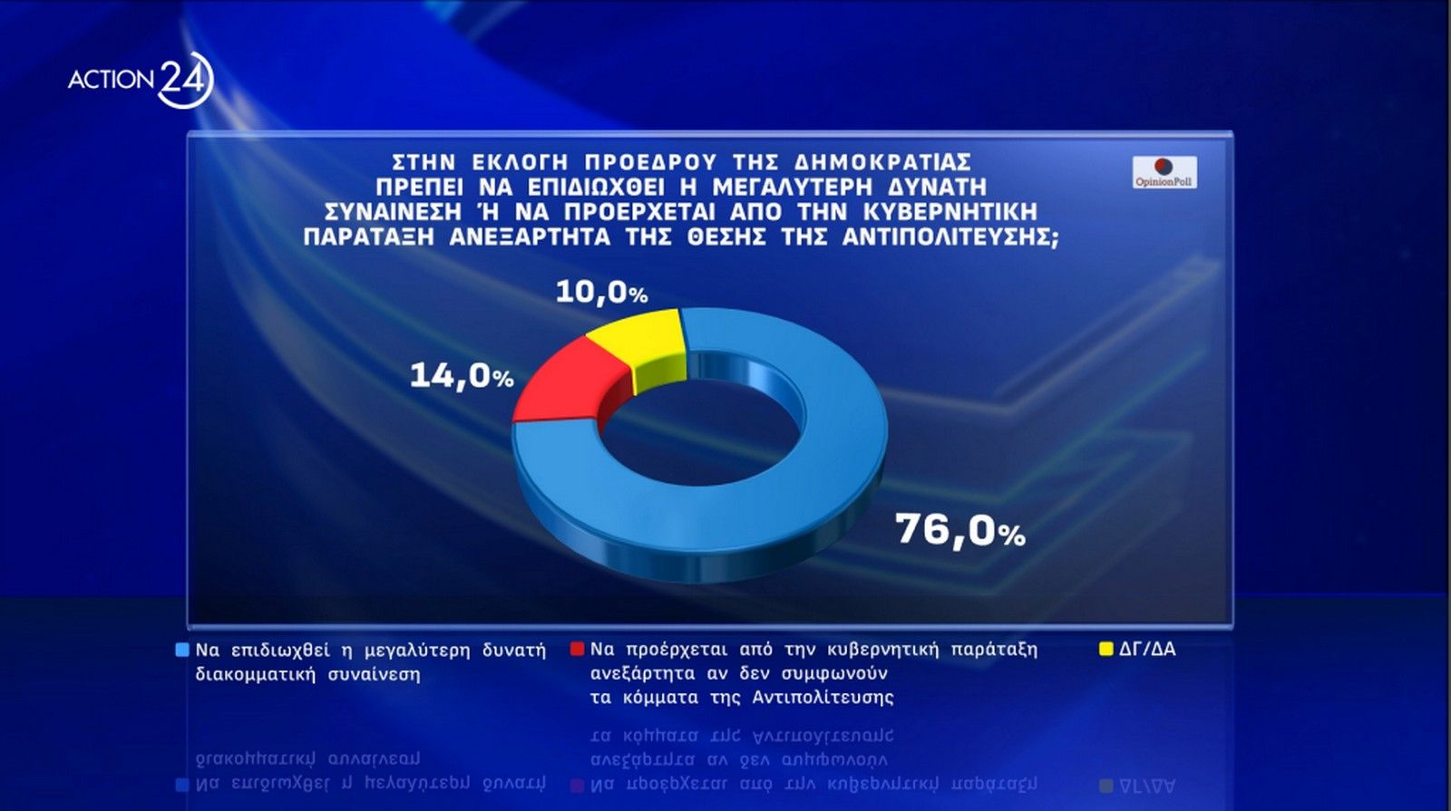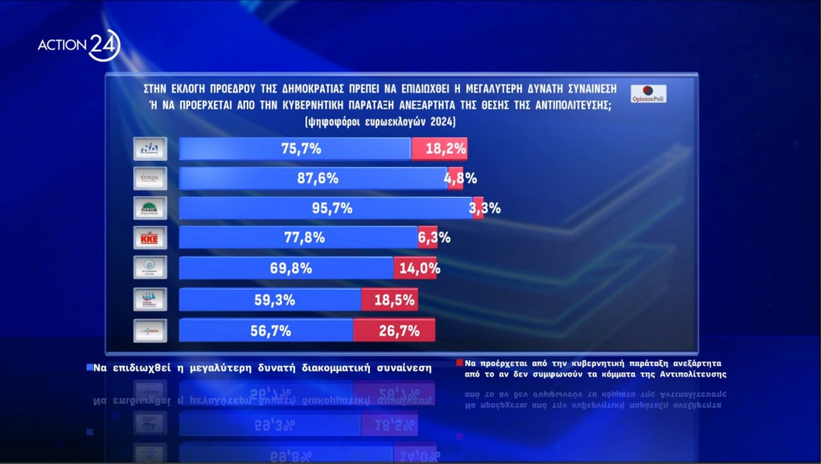 Το 76% θεωρεί ότι κατά την διαδικασία εκλογής Προέδρου της Δημοκρατίας θα πρέπει να επιδιωχθεί η μεγαλύτερη δυνατή διακομματική συναίνεση.