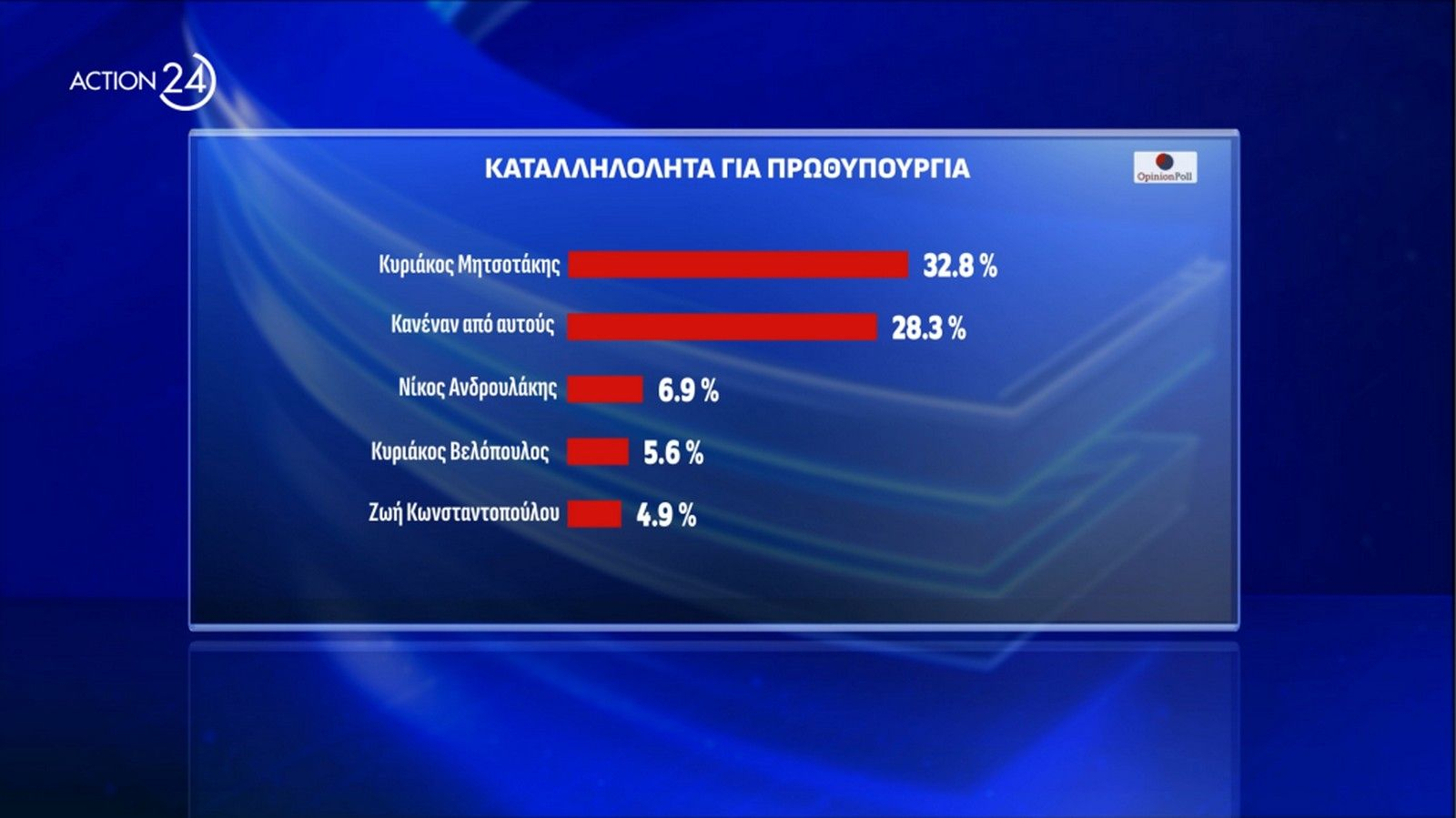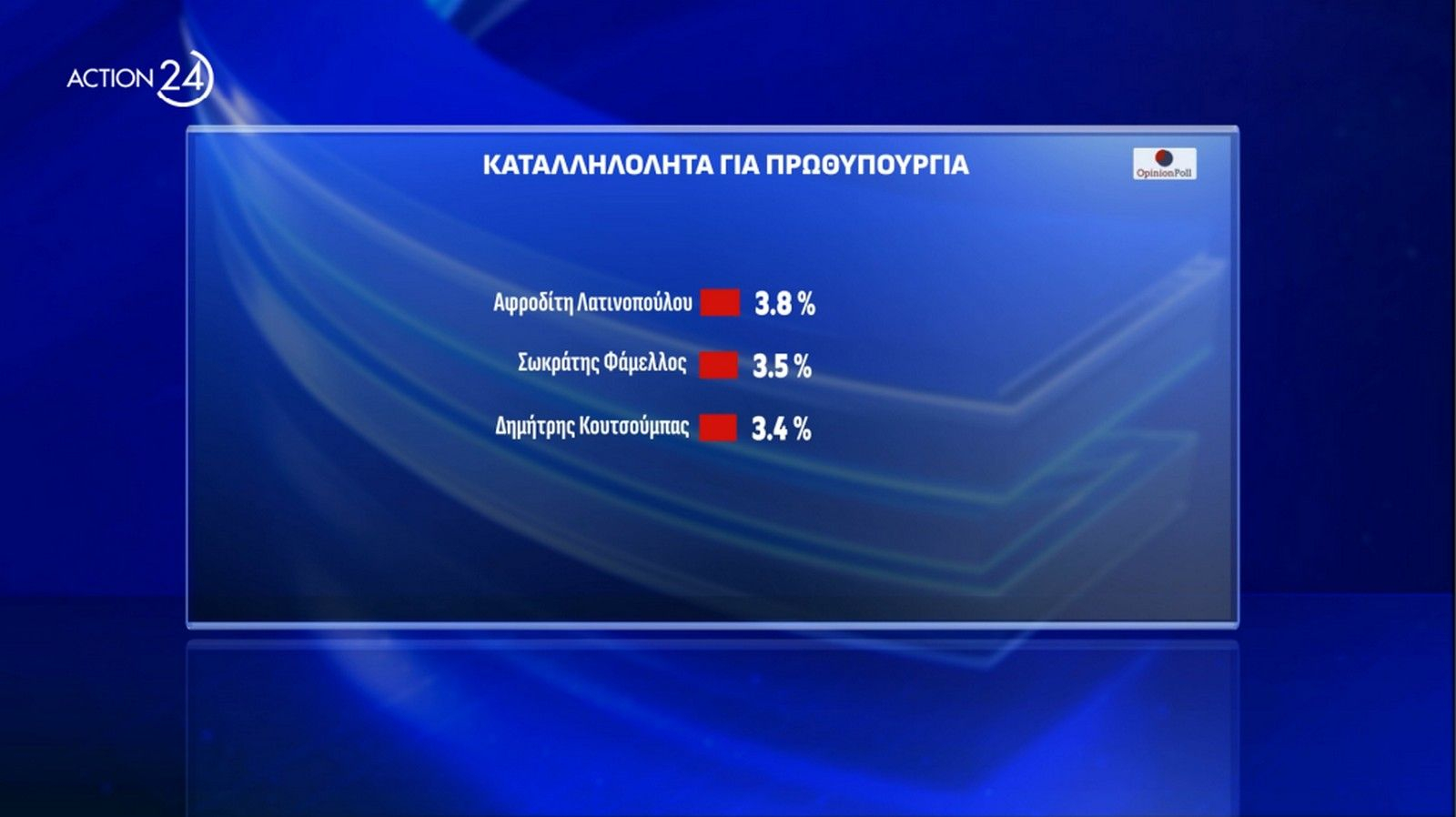 Στην πρώτη δημοσκόπηση του ACTION 24 και της OPINION POLL για το 2025, οι πολίτες απάντησαν για το τι τους προβληματίζει και ποιες προσδοκίες έχουν, για τα χαρακτηριστικά του Προέδρου της Δημοκρατίας, για την πολιτική σταθερότητα στη χώρα καθώς, όπως επίσης για την πρόθεση ψήφου και την καταλληλότητα για την πρωθυπουργία.