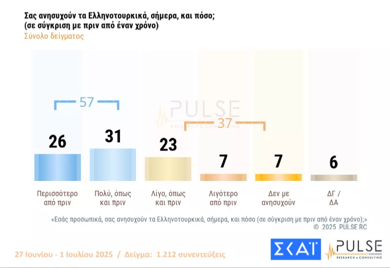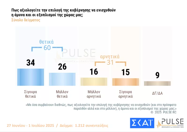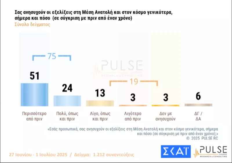 Στα υπόλοιπα ερωτήματα, οι πολίτες κλήθηκαν να απαντήσουν σχετικά με τα ελληνοτουρκικά, τις εξελίξεις στη Μέση Ανατολή και τις επιλογές της κυβέρνησης στα εξοπλιστικά.