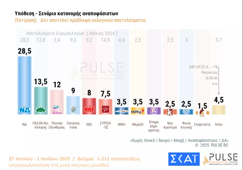 Δημοσκόπηση Pulse: Στο 24% η ΝΔ, με το σκάνδαλο του ΟΠΕΚΕΠΕ να αφήνει το αποτύπωμά του