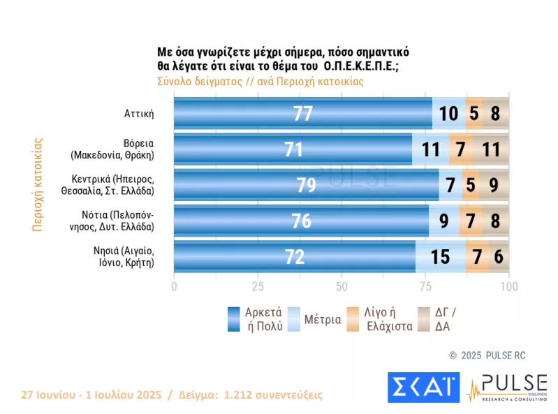Το 76% των ερωτηθέντων δήλωσε ότι είναι πολύ ή αρκετά σημαντικό το θέμα του ΟΠΕΚΕΠΕ, ενώ ένα επιπλέον 10% θεωρεί το θέμα μέτρια σημαντικό.