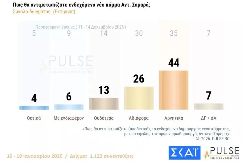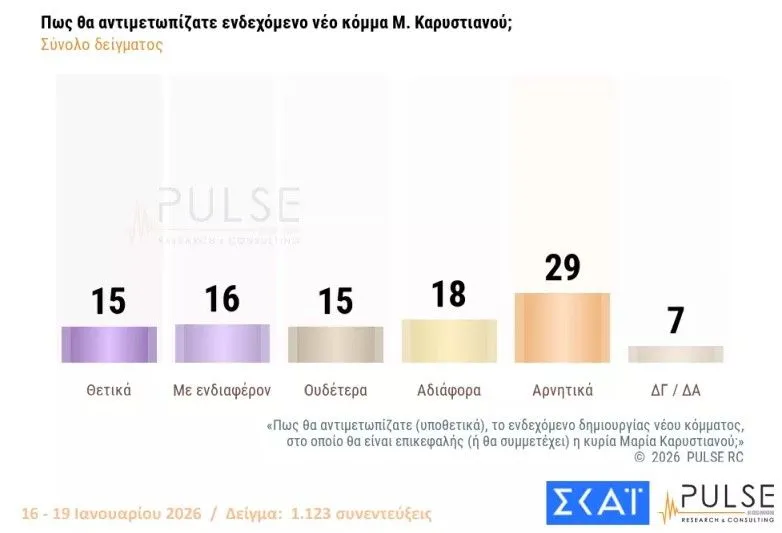 Τι δείχνει η δημοσκόπηση της Pulse για την πρόθεση ψήφου. Πώς “βλέπουν” οι πολίτες ενδεχόμενα κόμματα Τσίπρα, Σαμαρά και Καρυστιανού.