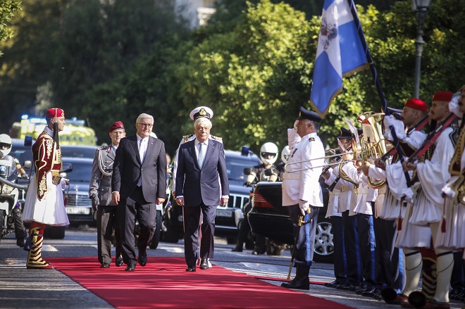 "Τα εθνικά θέματα είναι ΄και ευρωπαϊκά" ξεκαθάρισε ο πρόεδρος της Δημοκρατίας κατά στην συνάντησή του με τον Γερμανό ομόλογό του. Ανέπτυξε το Ευρωπαϊκό του όραμα με τον κ. Στάινμαϊερ να αναφέρεται βελτίωση των σχέσεων Βερολίνου - Αθήνας
