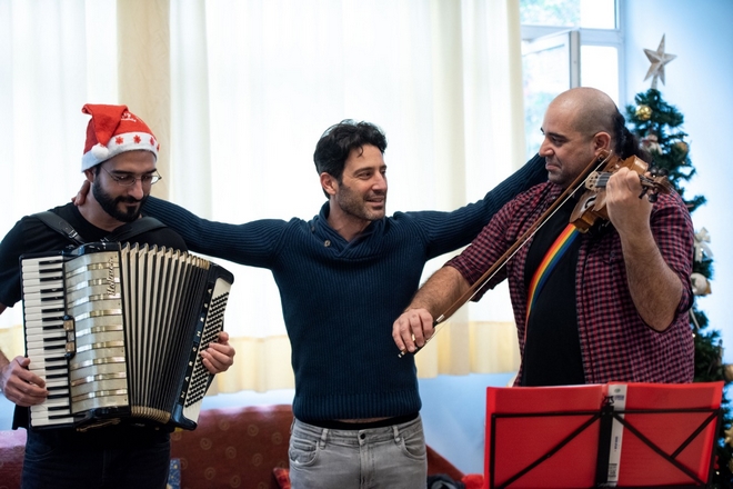 Την ψυχαγωγία των παιδιών ανέλαβαν ο Λευτέρης Ελευθερίου και ο Αλκιβιάδης Κωνσταντόπουλος. Σε κλίμα χαράς, και με άκρως γιορτινή διάθεση, οι καλλιτέχνες ταξίδεψαν μουσικά τα παιδιά με κάλαντά από όλη την Ελλάδα, συζήτησαν μαζί τους και τα ψυχαγωγήσαν με τις διασκεδαστικές ιστορίες τους.