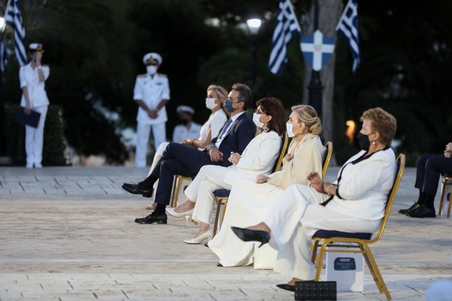 Στον χαιρετισμό της, η Πρόεδρος της Δημοκρατίας Αικατερίνη Σακελλαροπούλου υπογράμμισε ότι «τιμούμε σήμερα τη μνήμη των προγόνων που πολέμησαν για την ελευθερία τους», όπως αναφέρει το ΑΠΕ-ΜΠΕ.