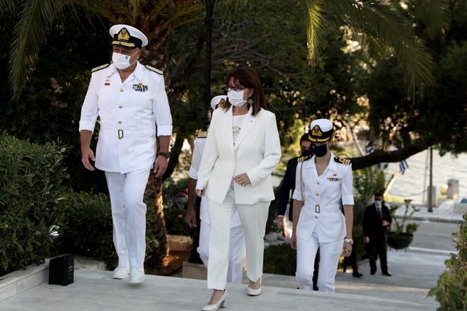 Εκδήλωση για τον εορτασμό επετειου 2.500 χρονων απο τη ναυμαχία της Σαλαμίνς παρουσία της Προέδρου της Δημοκρατίας Κατερίνας Σακελλαροπούλου, και του Πρωθυπουργού Κυριάκου Μητσοτάκη. (EUROKINISSI/ ΣΤΕΛΙΟΣ ΜΙΣΙΝΑΣ) Eurokinissi