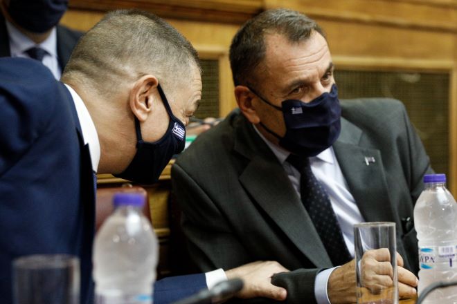 Ο ΥΠΕΘΑ Νίκος Παναγιωτόπουλος μαζί με τον υφυπουργό Άμυνας, Αλκιβιάδη Στεφανή στην Επιτροπή Εξωτερικών και Άμυνας της Βουλής Eurokinissi