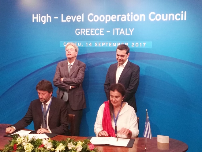 Οι δύο υπουργοί, στη διμερή τους συνάντηση, συμφώνησαν να εντατικοποιήσουν τις πολιτιστικές και μορφωτικές σχέσεις των δύο χωρών, ειδικότερα στον τομέα της πολιτιστικής κληρονομιάς εστιάζοντας, ταυτόχρονα, επισταμένα στη σύγχρονη τέχνη μέσα από μια σειρά πλούσιων πολιτιστικών δράσεων και ανταλλαγών ανάμεσα σε Ελλάδα και Ιταλία, που θα ξεκινήσουν από την Άνοιξη του 2018.