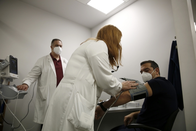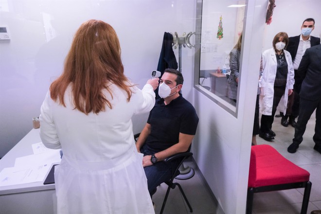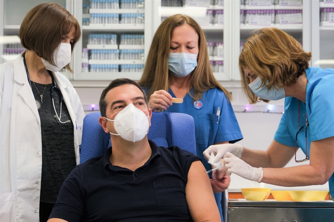 Ο πρόεδρος του ΣΥΡΙΖΑ εμβολιάστηκε στον "Ευαγγελισμός", άσκώντας κριτική στην κυβέρνηση για τους χειρισμούς της σχετικά με την ενίσχυση του ΕΣΥ.