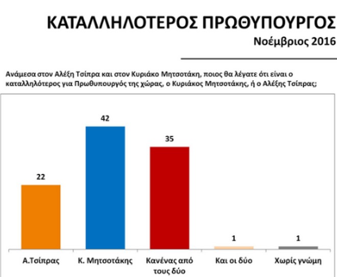 Το 35% των πολιτών απαντά ότι κανένας από τους δύο δεν είναι ο καταλληλότερος για τον πρωθυπουργικό θώκο.