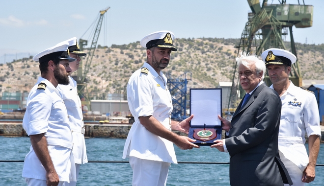 Ο Πρόεδρος της Δημοκρατίας Προκόπης Παυλόπουλος παραλαμβάνοντας από τον αρχηγό ΓΕΝ αντιναύαρχο Γεώργιο Γιακουμάκη ένα ομοίωμα υποβρυχίου 214 σε ανάμνηση της σημερινής ημέρας, ευχήθηκε στα πληρώματα να φανούν αντάξια έναντι των προγόνων, που μας δίνουν τη δυνατότητα να θυμόμαστε το χρέος και τις παραδόσεις μας. Για να συμπληρώσει με έμφαση ότι στους δύσκολους καιρούς που διανύουμε, η Πολιτεία θα πράξει το χρέος της έστω και εάν έχει καθυστερήσεις.