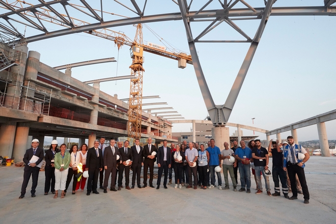 Τον Πρωθυπουργό υποδέχθηκε ο Διευθύνων Σύμβουλος της Fraport Greece κ. Αλεξάντερ Ζινέλι, ο οποίος και τον ξενάγησε στους δύο ορόφους του εργοταξίου και τον ενημέρωσε εκτενώς για την πρόοδο των έργων.