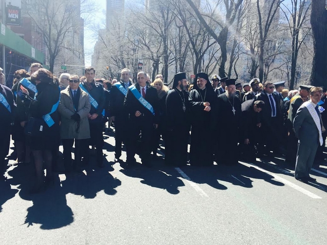 Επίσης, συμμετείχε την Κυριακή 29 Μαρτίου στη δοξολογία, καθώς και στη μεγάλη παρέλαση στην 5η Λεωφόρο του Μανχάτταν προς τιμή της εθνικής εορτής της 25ης Μαρτίου, όπου είχε την ευκαιρία να συνομιλήσει με τον Κυβερνήτη της Πολιτείας της Νέας Υόρκης Α. Κουόμο και τον Δήμαρχο της πόλης Μπιλ ντε Μπλάζιο.